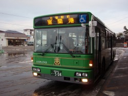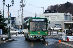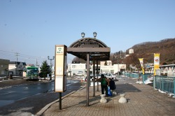 洞爺駅から洞爺湖あでは洞爺湖温泉行きのバスで向かう。バスは駅前のバス停から発車