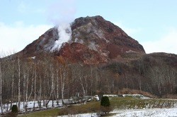 次に洞爺湖から有珠山へ向かう事にする。しかし、バスターミナルの切符売場で有珠山 へ行くバスの時刻を確認すると、この時期、バスの運行が無いとのこと。従って、有珠山 へ向かうためにはタクシーしかない。さすがに1人でタクシーで有珠山を往復するのは辛 い。洞爺湖温泉に浸かりながらO氏と待つ事も考えるが、合流後に温泉に入る筈なので没。