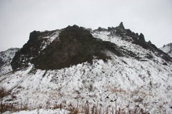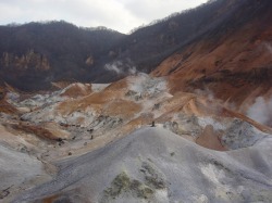 剥き出しになっていて、さらに所々から煙が出ている。この山が今尚活動している事が判