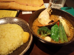 スープカレーは何度か食べた事があるが、じゃがいも等の具材を丸ごと載せる豪快さが特