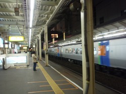 ホテルから駅までは意外と距離がある。間に合うかどうか微妙な所である。O氏は無理 して乗車予定の列車に乗りたくはないと言った様子。それには理由もあり、まもなく発車 する「スーパー北斗3号」と次の便の「北斗5号」、実は車両が異なる。O氏としては「北 斗5号」の車両に興味があるらしい。