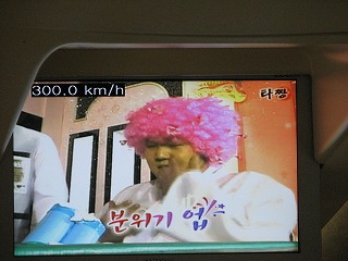 座席に座り、暫くすると発車。ソウルを出ると徐々に速度が上がっていく。最終的に 300km/hに到達! 一昨日、昨日と微妙に300km/hを下回り、300kmの大台を超える事ができな かったが、ようやく300km運転を体験!