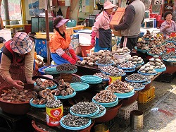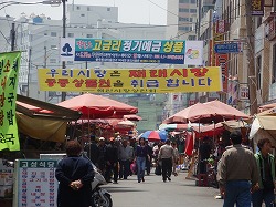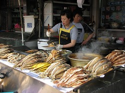 チャガルチ驛到着後、まずは駅周辺を歩きながらお土産を探す。海沿いに市場が広がる。