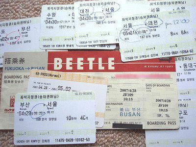パスポートと「コリアレール&ビートルパス」を出し、乗船券を発券してもらう。そして、