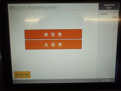 今回は、片道乗車券を購入する為、「單程票」を選択します。