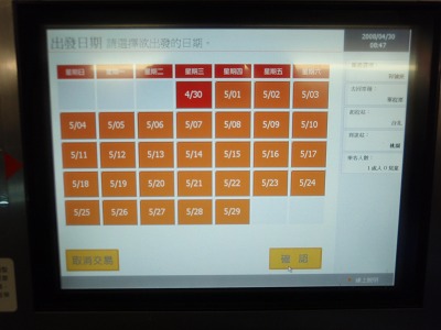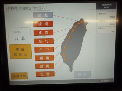 台灣高鐵(台湾新幹線)の自動券売機 |