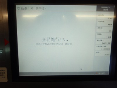前Stepにて「是」または「否」を選択すると、以下の文言が表示され、乗車券の発券処理 が行なわれるので、暫く待ちます。
