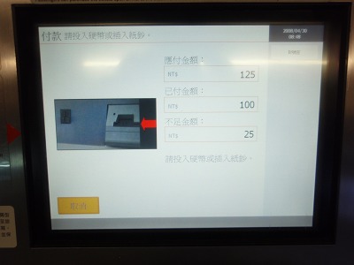 従って、今回のように125元の乗車券を1,000元紙幣で購入すると50元コインが17枚 出る事になります。財布が小銭だらけになり、とても重くなります!