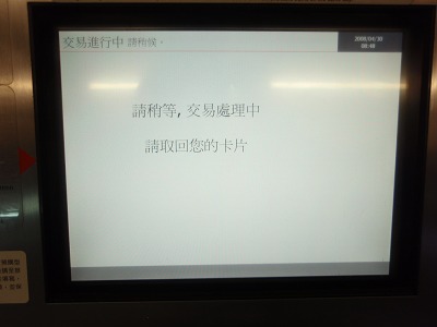 「少々お待ちください、取引処理中です。あたなのカードをお取りください。」